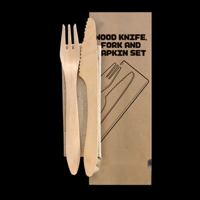 | Przedmiot | 190 mm Hurtowy jednorazowy biodegradowalny drewniany nóż widelec serwetka zestaw sztućców papier pakowy owinięty do hotelowej restauracji |